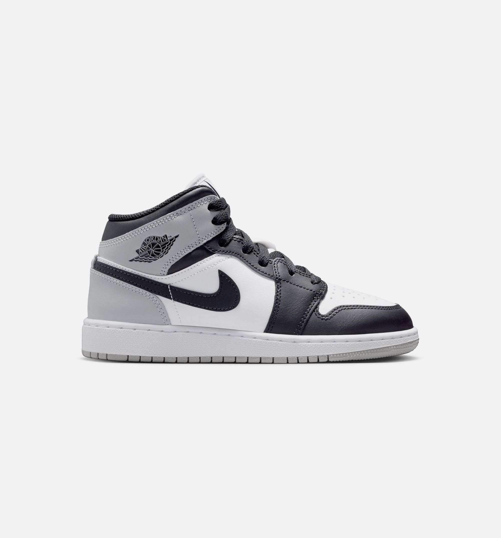 Air Jordan 1 Mid Grade School Lifestyle Shoe - White/Light Smoke Grey/Black